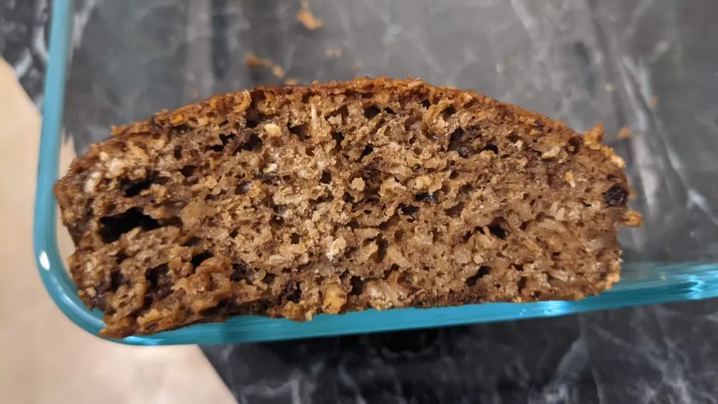 It looked and smelt gross going into the oven and coming out. But it actually tasted quite good. I honestly didn't expect to enjoy it, but this morning I toasted some and put some butter on it an oh my goodness it was good. It's stayed out on my bench for the past week and is still ok, still moist and ok to eat fresh.